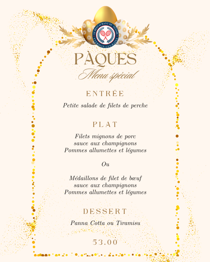 Menu valable dimanche de Pâques (05.04) et Lundi (06.04) à midi.